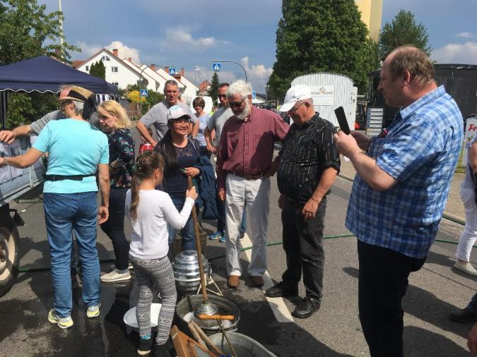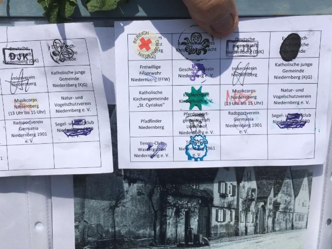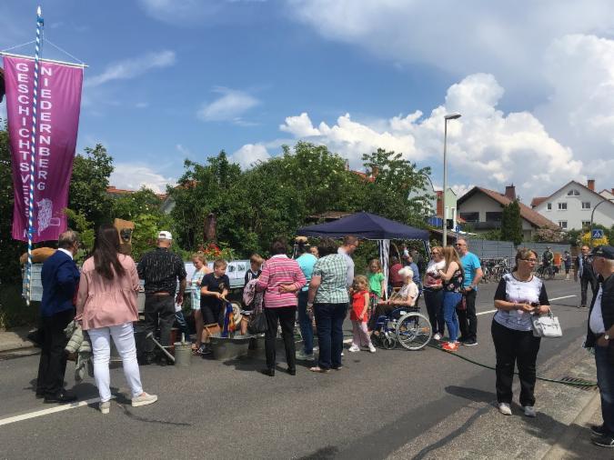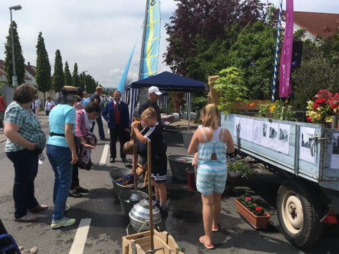 Eine Bilderausstellung des Geschichtsvereines mit Luftaufnahmen von Albert Wagner wurde im Wasserturm ausgestellt. U.a. sah man eine Rundumsicht vom Turm oben auf den Ort und die umliegende Region. Weitere nostalgische Fotos der alten Niedernberger Dorfbrunnen waren rund um unseren Standwagen platziert.
