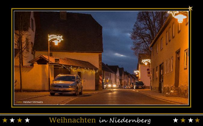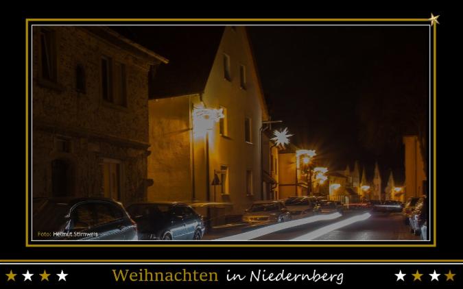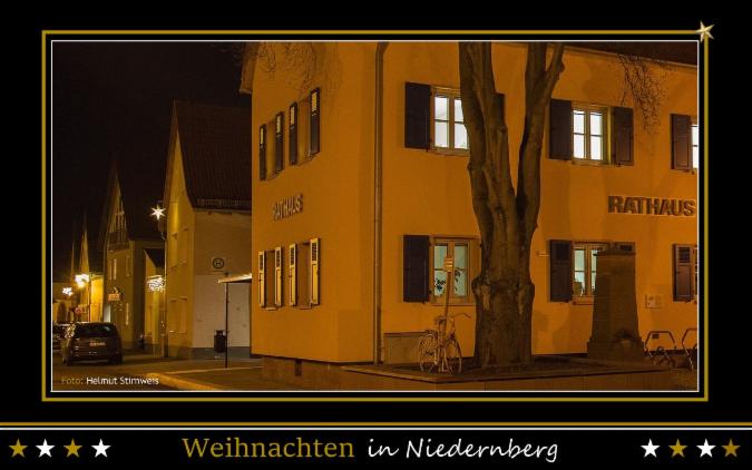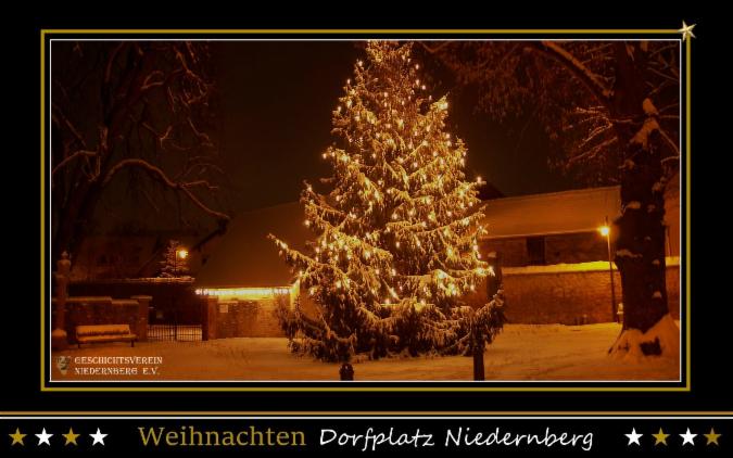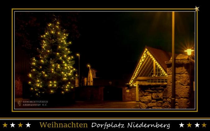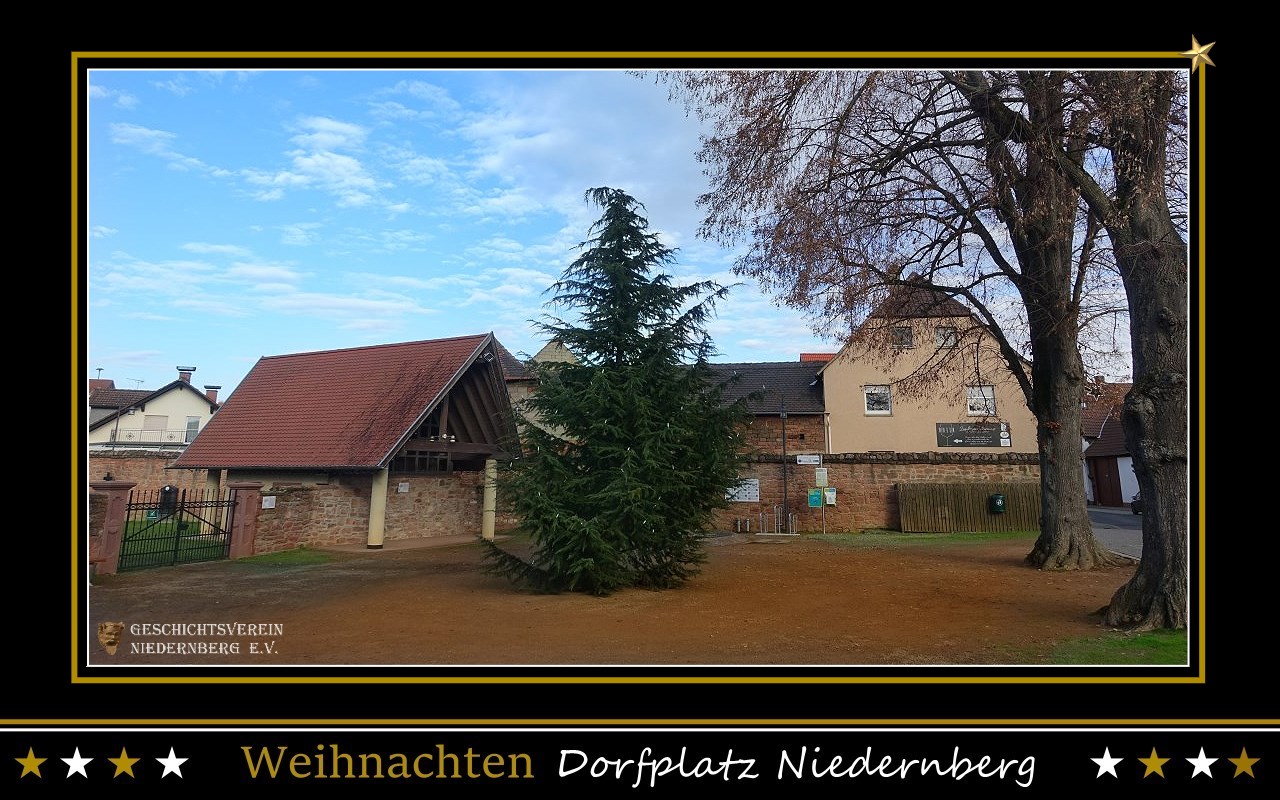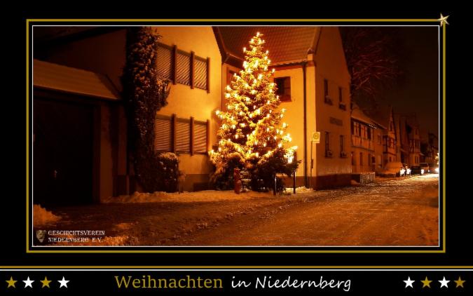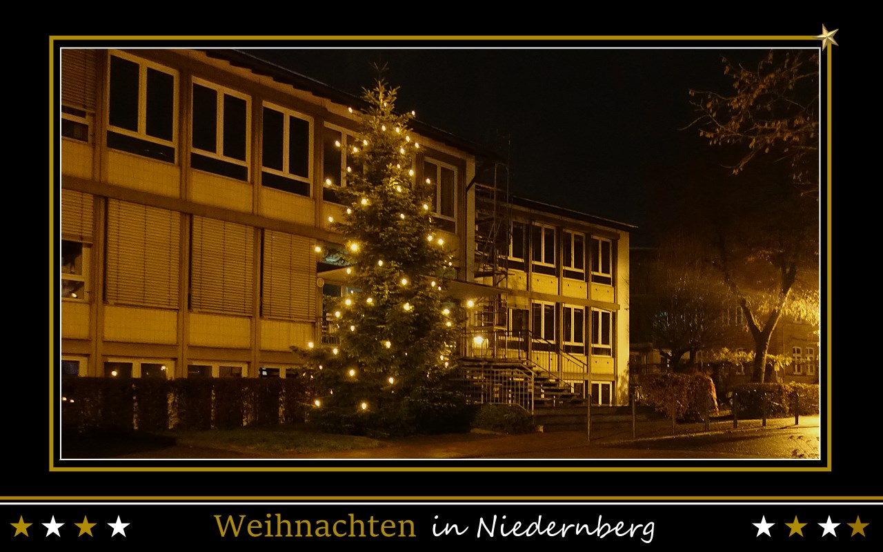 Erstmals in den 1960er Jahren wurde in der Advents- und Weihnachtszeit von der Gemeinde ein Baum mit Lichtern geschmückt. Dies war eine Blaufichte vor der alten Sandsteinschule (Foto). Die abgebildeten Bäume wurden jedoch im Zuge der Neugestaltung des Schulvorplatzes gefällt. Private Weihnachtsbeleuchtungen und -dekorationen im Freien waren zu dieser Zeit in Niedernberg noch nicht üblich.