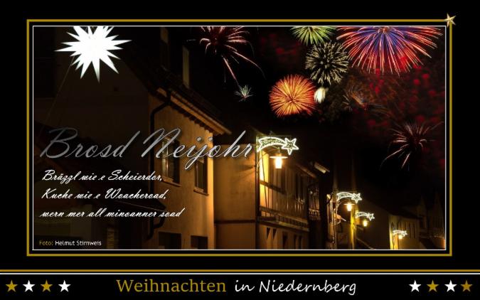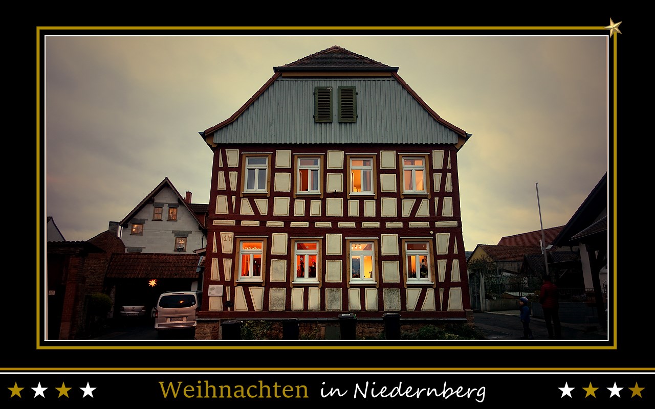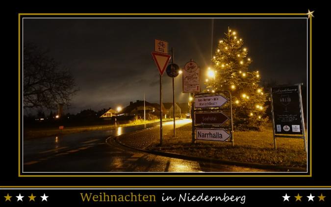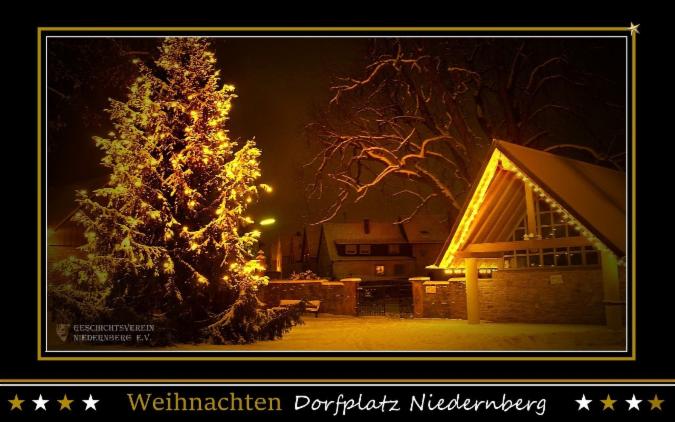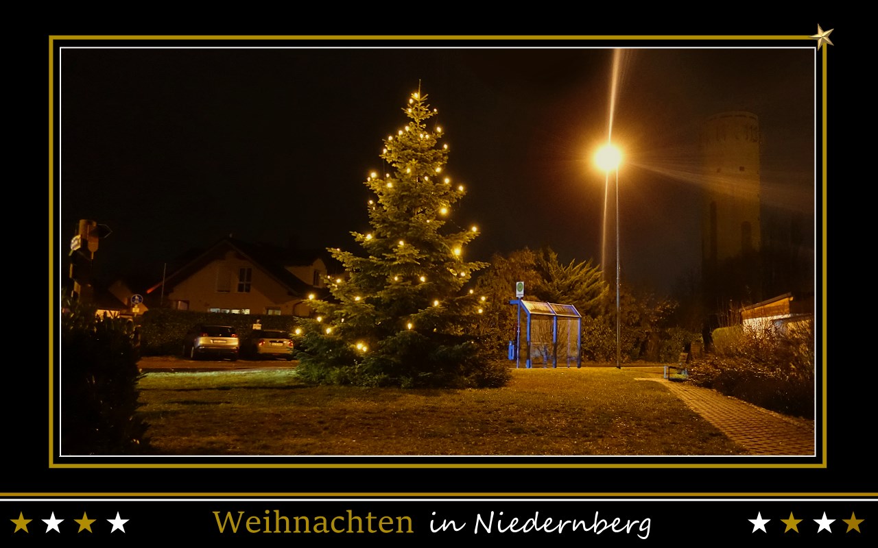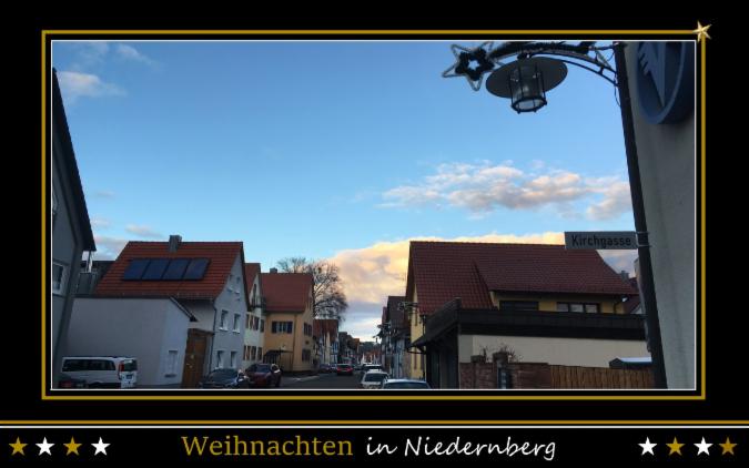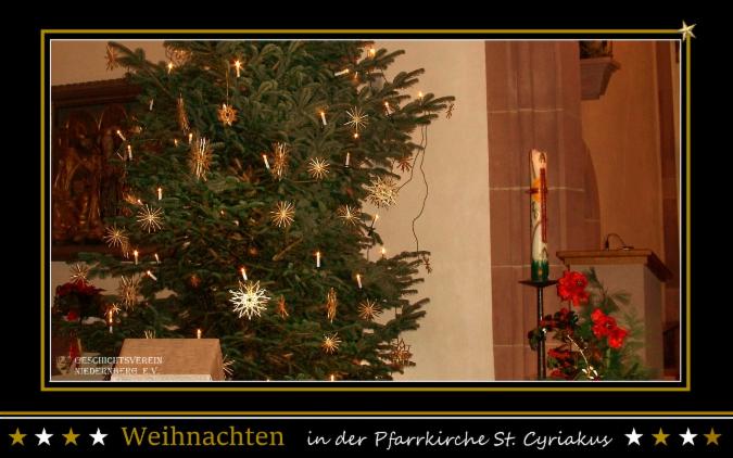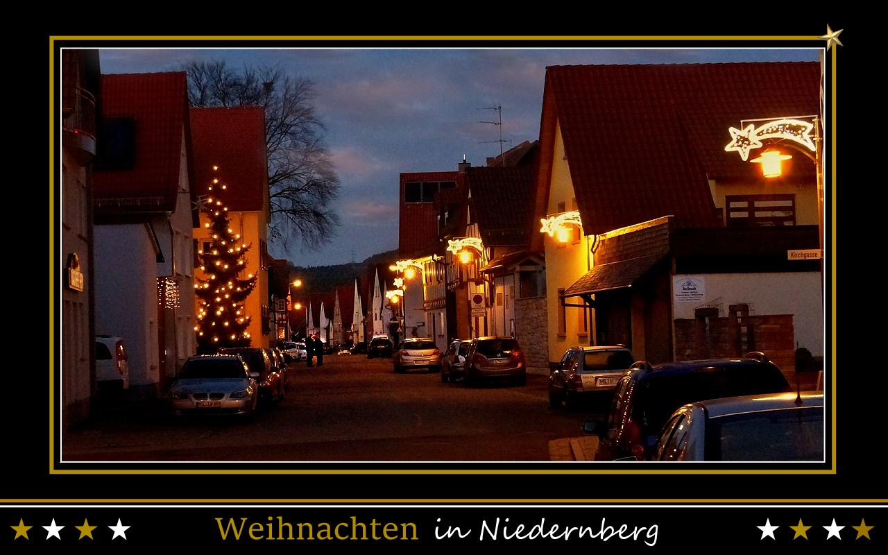 Erstmals in den 1960er Jahren wurde in der Advents- und Weihnachtszeit von der Gemeinde ein Baum mit Lichtern geschmückt. Dies war eine Blaufichte vor der alten Sandsteinschule (Foto). Die abgebildeten Bäume wurden jedoch im Zuge der Neugestaltung des Schulvorplatzes gefällt. Private Weihnachtsbeleuchtungen und -dekorationen im Freien waren zu dieser Zeit in Niedernberg noch nicht üblich.