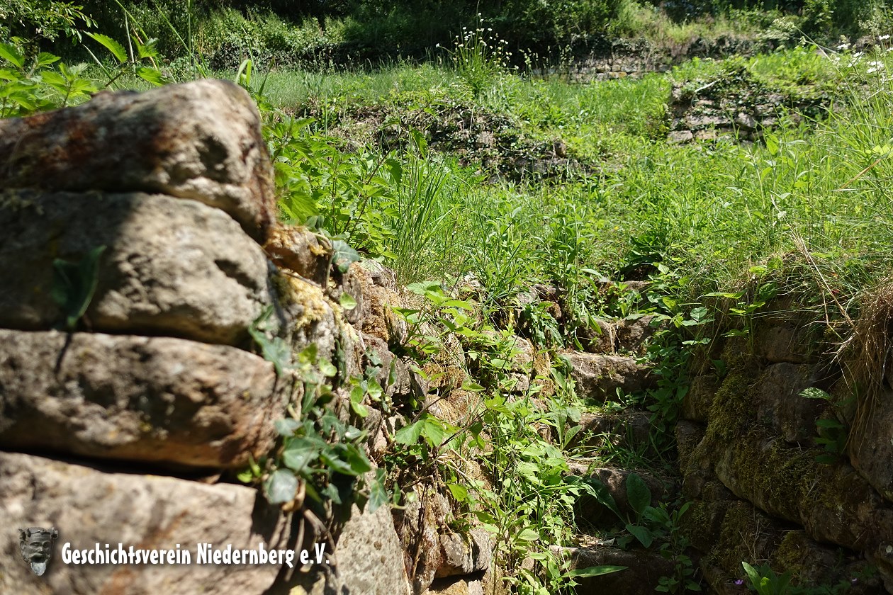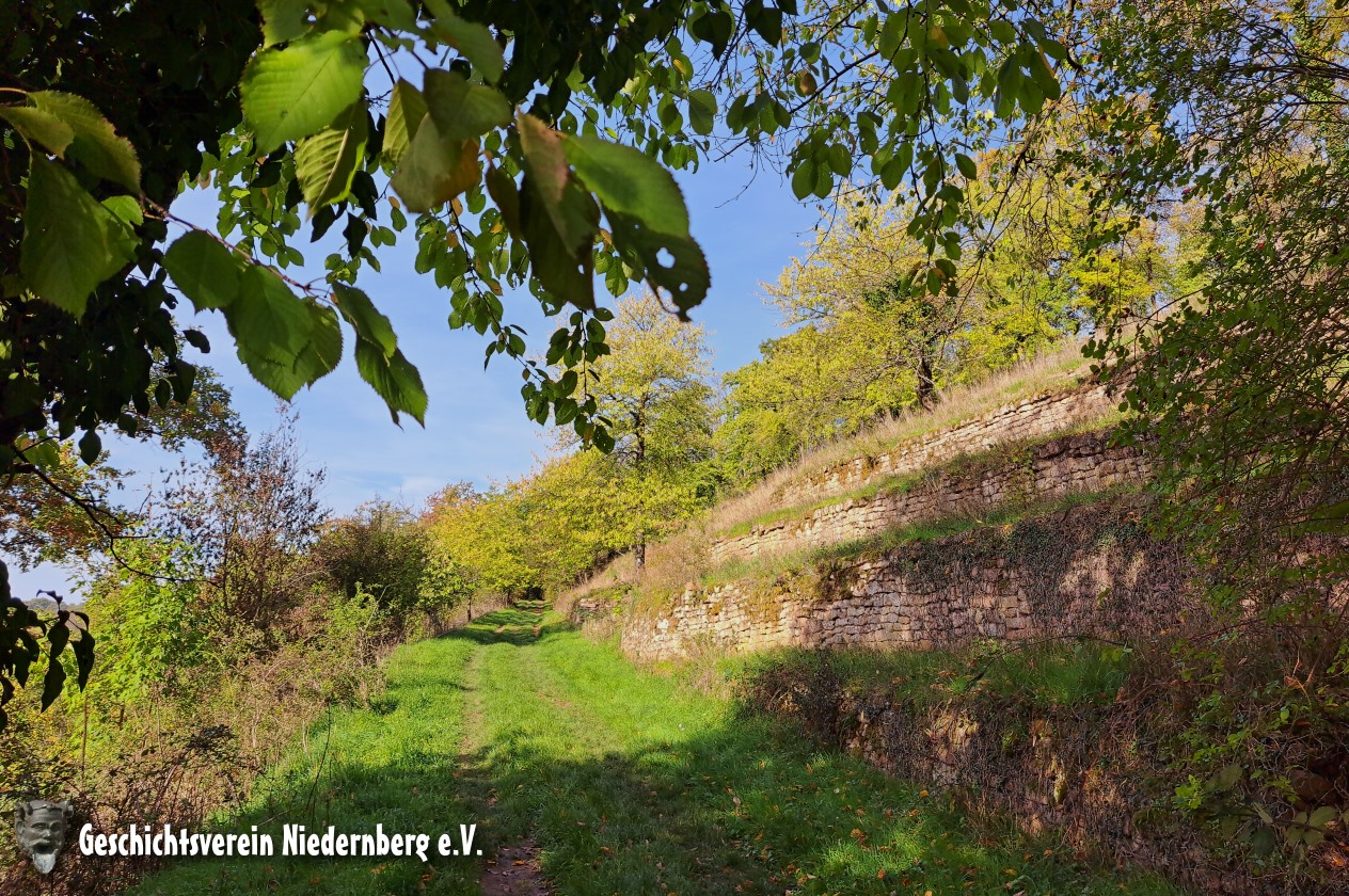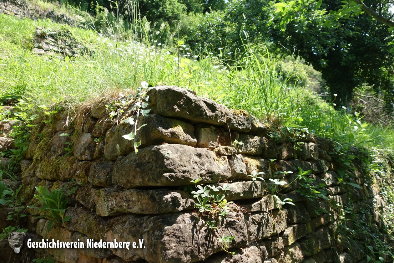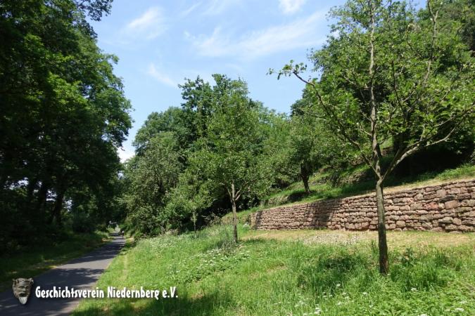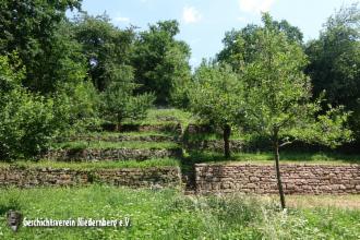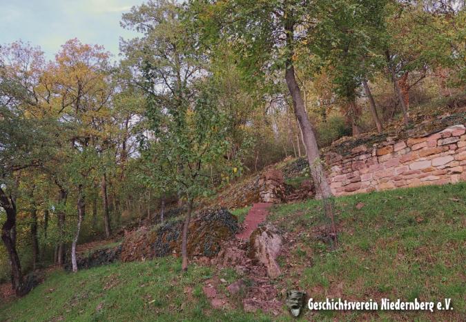 Ehemalige Terrassenweinberge mit Buntsandsteinmauern (auch Wännschesmauer, Gewände, Wengersmauer und Wingertsmauer genannt) entlang des Europäischen Kulturwegs Kleinwallstadt. Infos zum Europäischen Kulturweg Niedernberg gibt es hier...