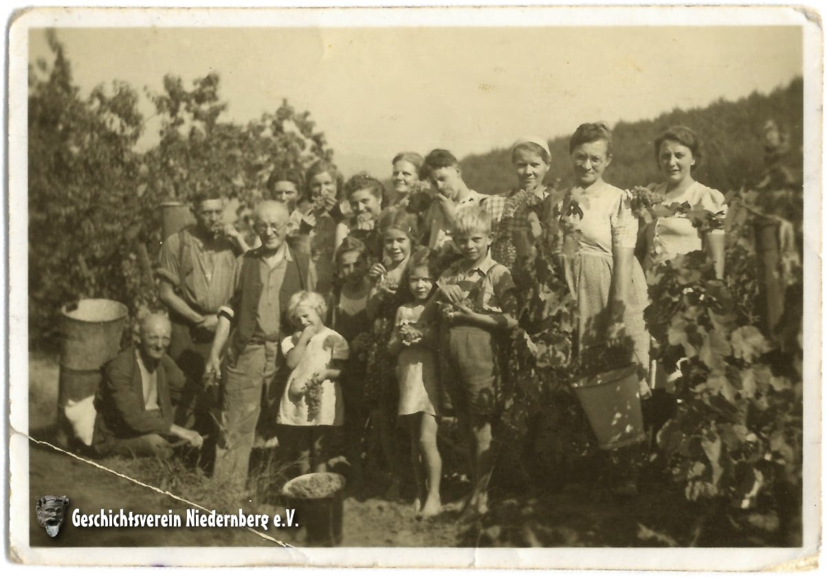 Bis Mitte ins 20. Jhd. waren noch etliche Häuserfassaden durch grünen Rebstockbewachs geschmückt, heute ist der Weinanbau in Niedernberg gänzlich verschwunden. Es weisen nur noch die vielen Flurnamen (Wingert / Weingarten im/am/vor) auf ehemalige Rebflächen im Niedernberger Gemarkungsbereich zurück. Der Obstanbau hielt Einzug, Apfelwein wurde zum Hausgetränk und löste den Wein in unserem Ort ab.