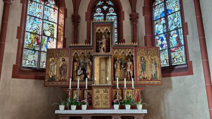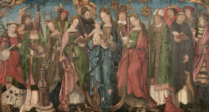 Ein Highlight auf der Führung ist sicherlich auch das über 500 Jahre alte Tafelbild der "14 Nothelfer", welches als gemalte Reproduktion in der gleichnamigen Kapelle und im Original zum bsseren Schutz in der Pfarrkirche hängt.