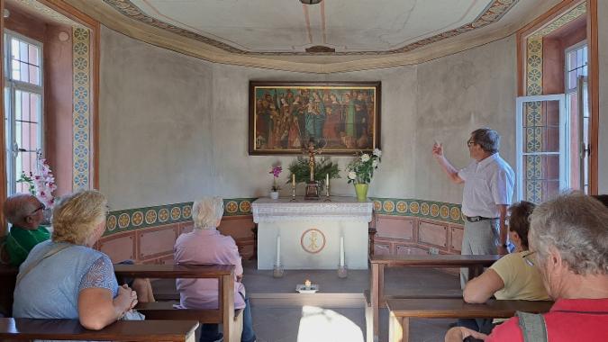 Nachdem wir für einige Wenigumstädter Kollegen am 6.7.2023 eine geführte Kulturwegbegehung durchführten, wurden wir seitens der Bachgauer zu einer Gemälde-Ausstellung und nachfolgenden Führung durch den Altort eingeladen. Im Anschluß kehren wir gemeinsam ein.