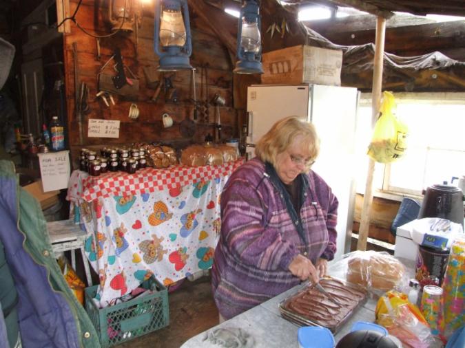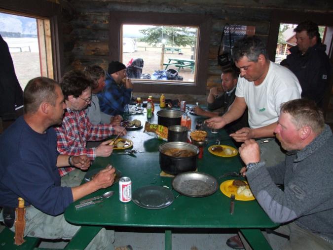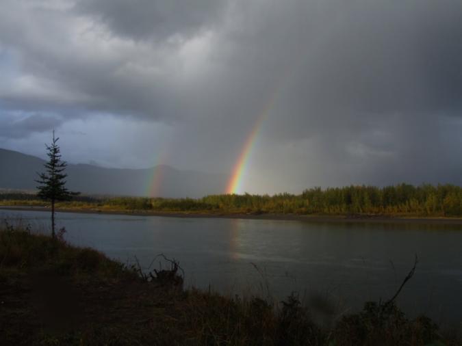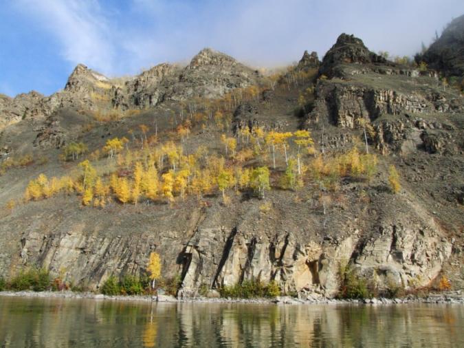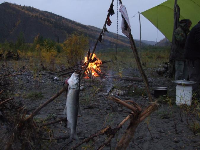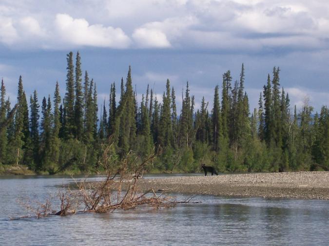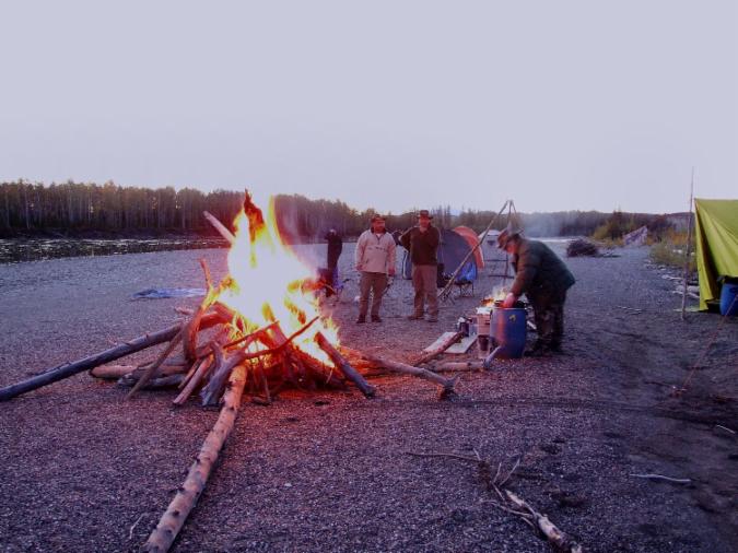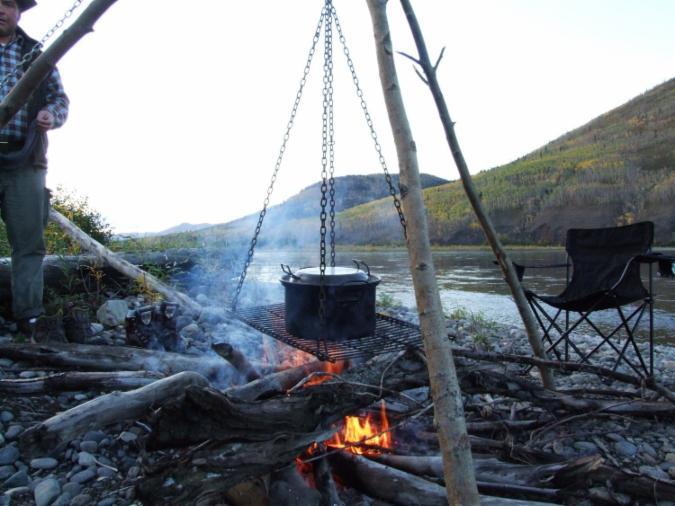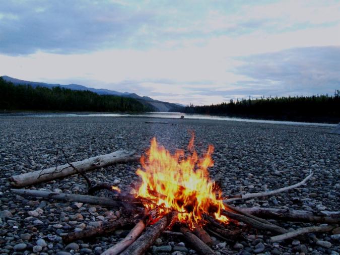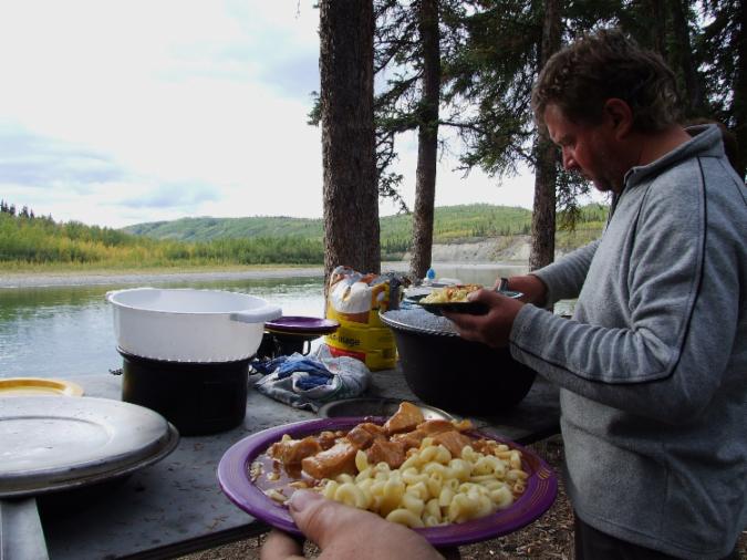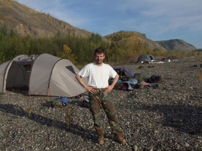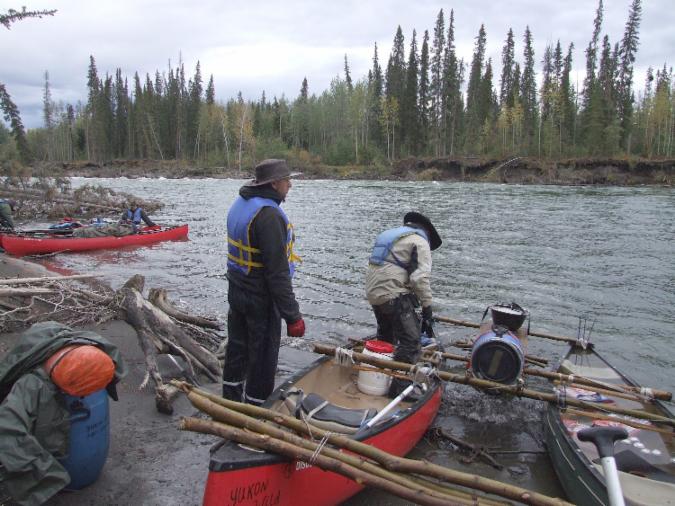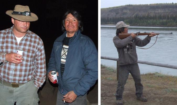 Auch auf den ehemaligen Handelsposten "Fort Selkirk" (1852 gegründet) wird mit vielen interessanten Bildern im Vortrag (Friedhof, ehem. Schule, Verkaufsräume und Wohnungen von innen) eingegangen. Das z.T. tragische Schicksal vieler Trapper und Goldsucher, welche in Einsamkeit am Fluß ihren Tod fanden, wird (untermalt mit Fotos z.B. der verrotteten Blockhütten) erzählt, auch die wenigen im Territorium lebenden Ureinwohner und deren Kulturen sind ein Thema des Vortrages. Eines nachts wurden die Protagonisten sogar von vier wildernden Indianern, die sich am Lagerfeuer anschlichen, überrascht. Die meisten Biervorräte hatten diese bereits aus den an Land liegenden Kanus entwendet.